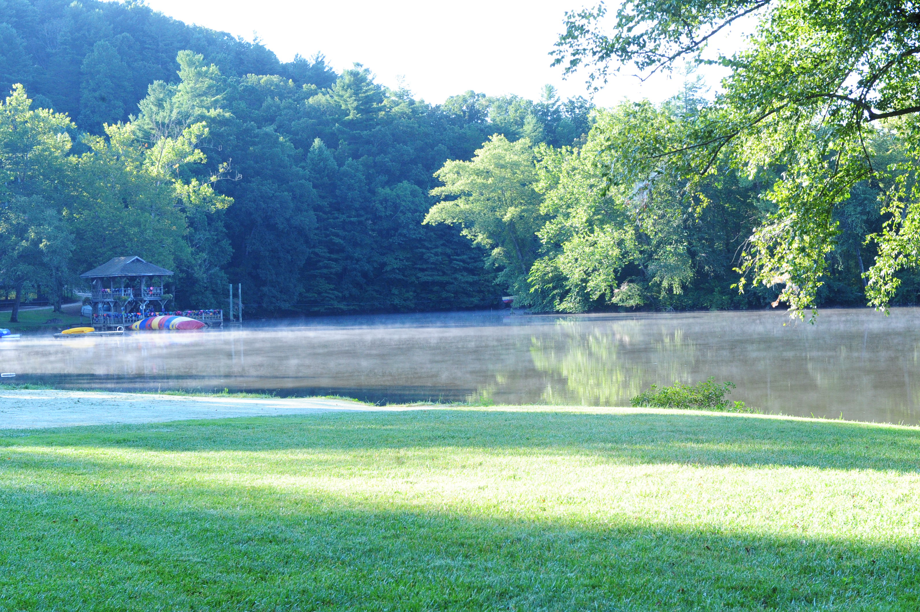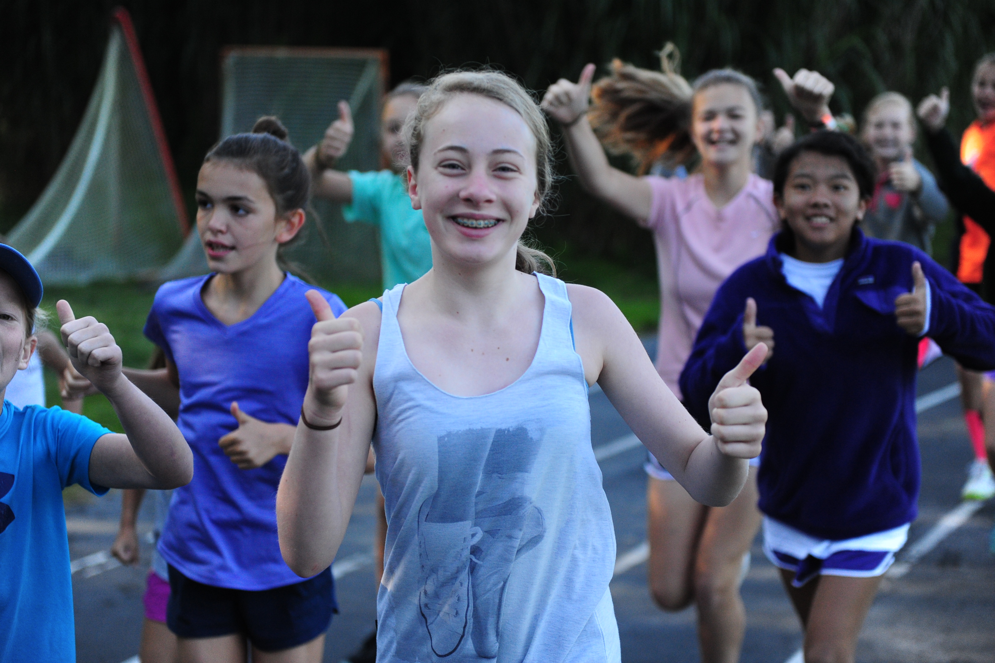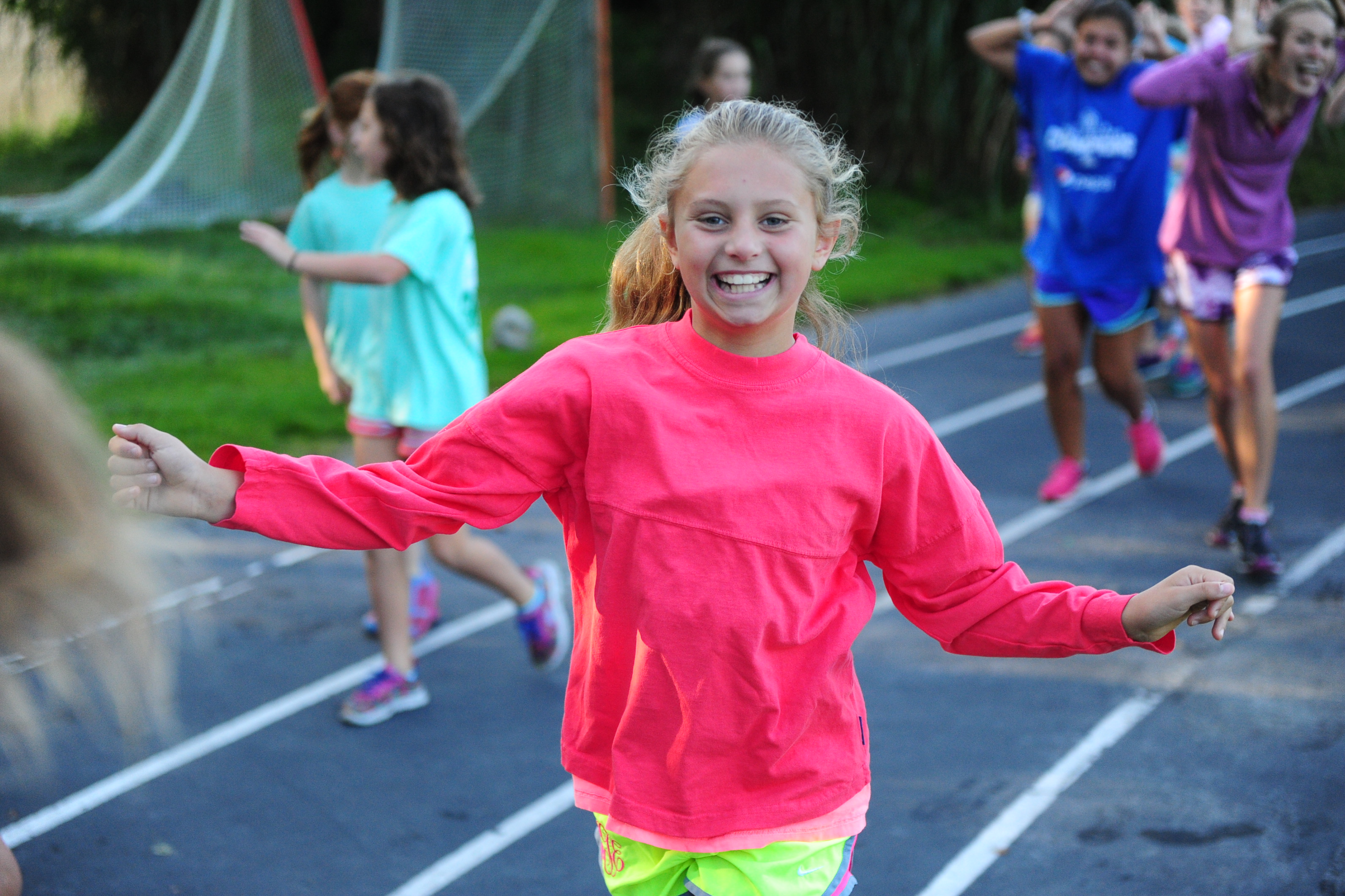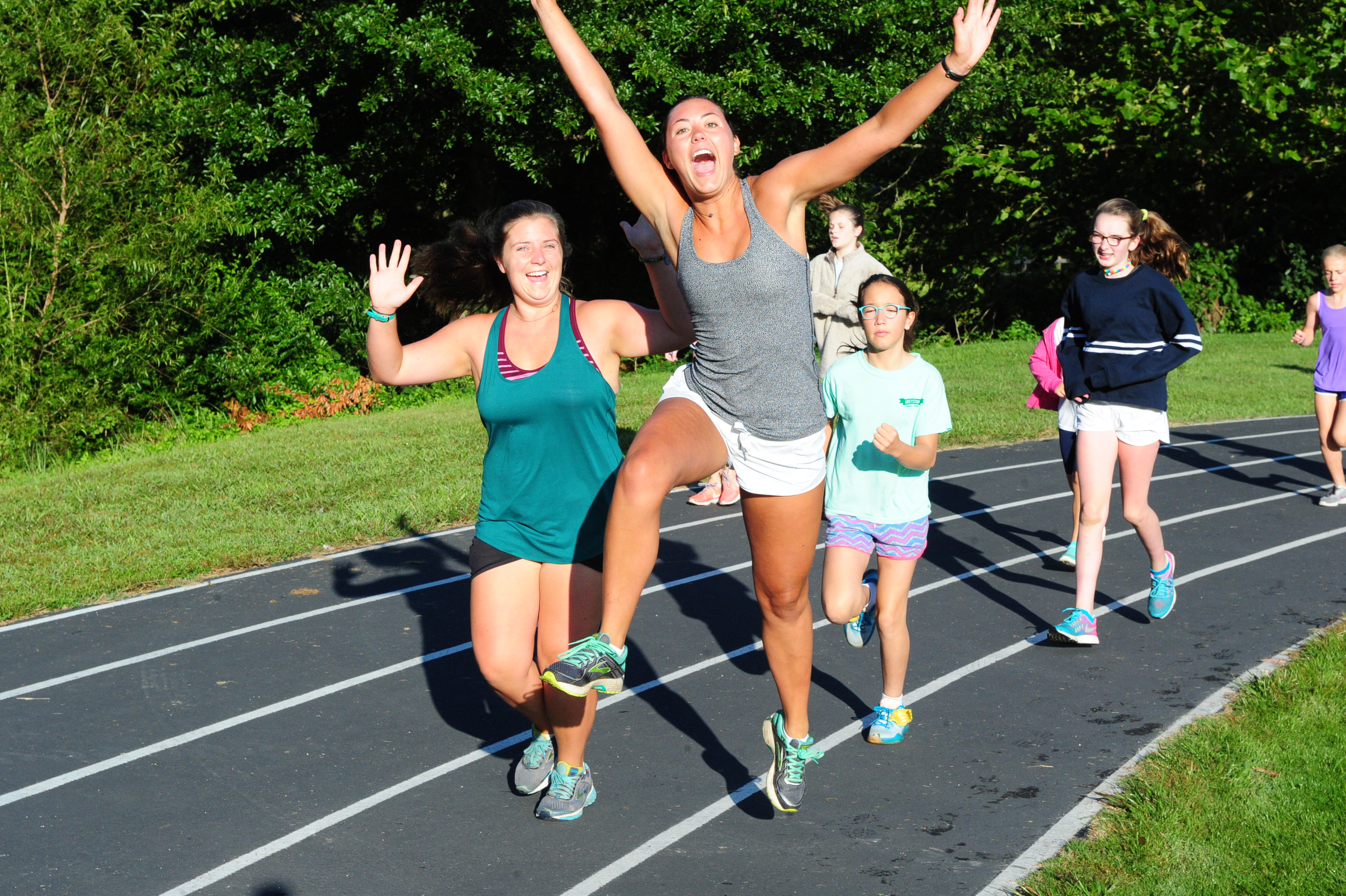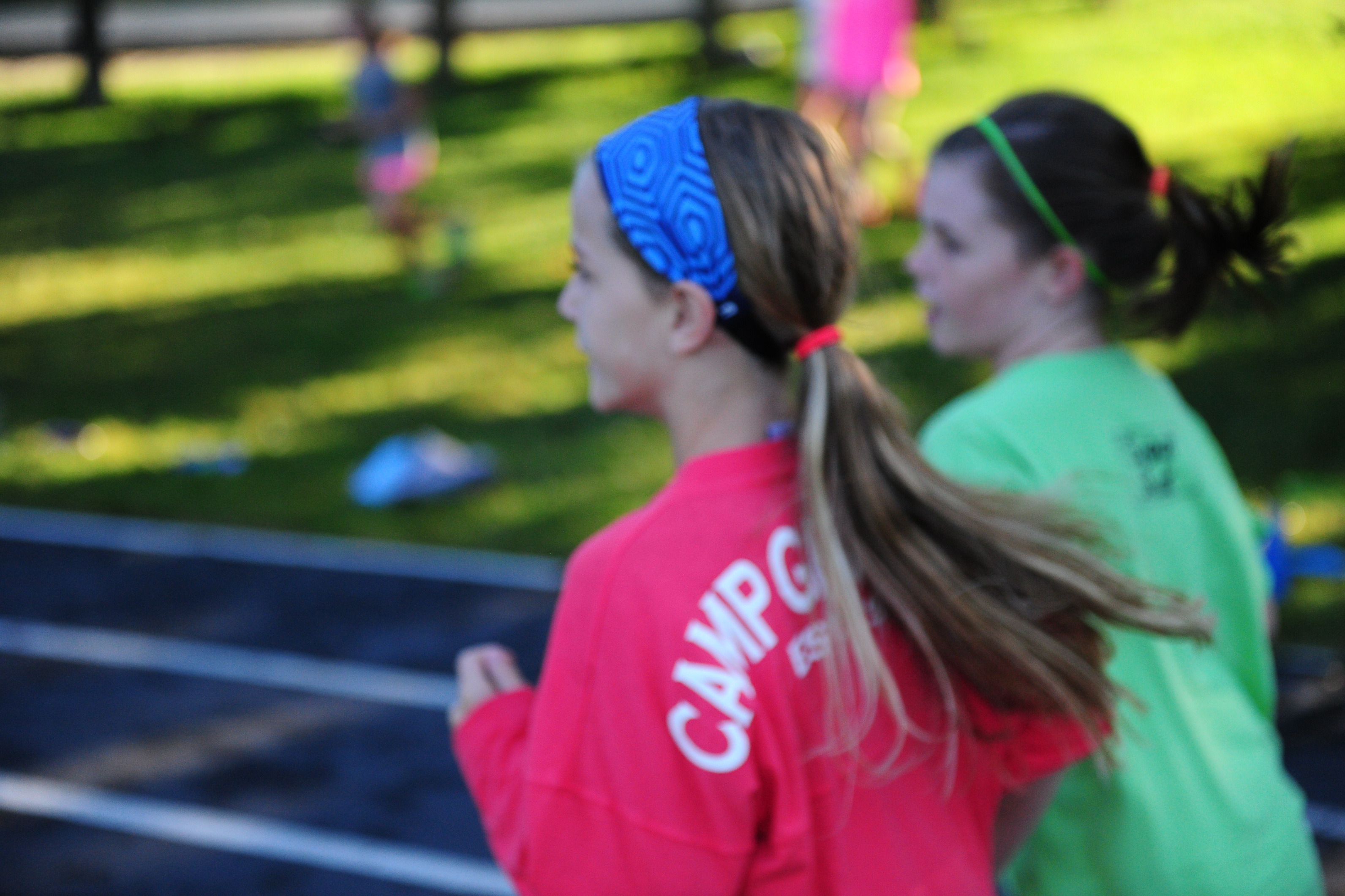 Anyone who does not want to sleep in gathers at the track for a running club (Greystone Stumblers) at 8:00. You would think such a club would not be popular, but you would be mistaken. About 400 girls showed up on a crisp sunny morning to run or walk three miles before breakfast beside the placid waters of Lake Edith. We play music, stretch out, and encourage each other in our training. It really is fun and the girls LOVE getting the prize (a really nice t-shirt in the Greystone Stumblers theme).
