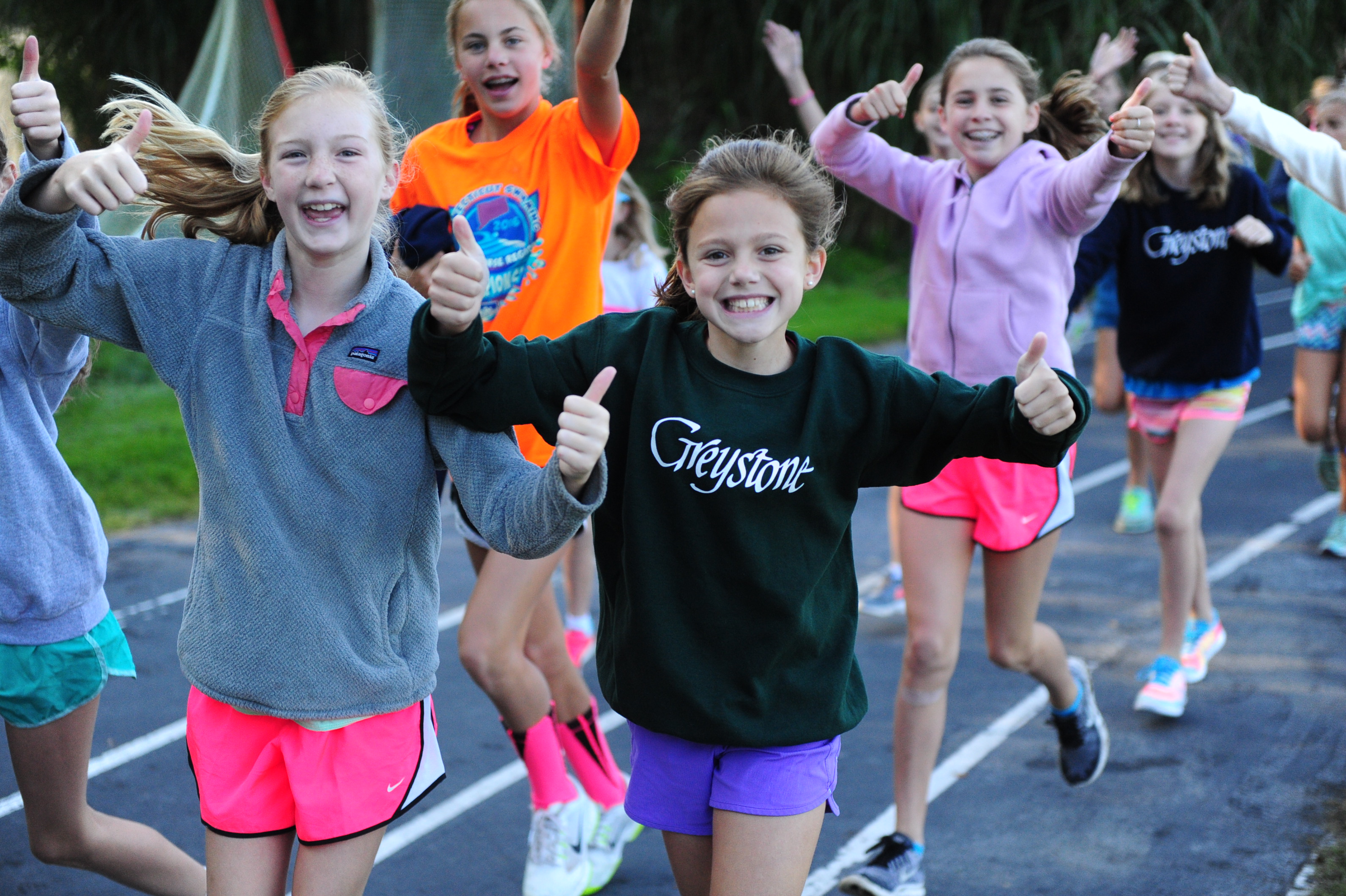 First off, girls can sleep late – what a treat! You can sleep in until 9 a.m. if you’d like, enjoying the extra amount of rest. However, many campers join us at the track at 8 a.m. for our Stumblers running club. Everyone is invited and encouraged to complete 3 miles (running or walking) in the hour time frame. By completing the Sundays in your session, girls earn a Stumblers t-shirt they can wear with pride. Most of our campers love coming to Stumblers!