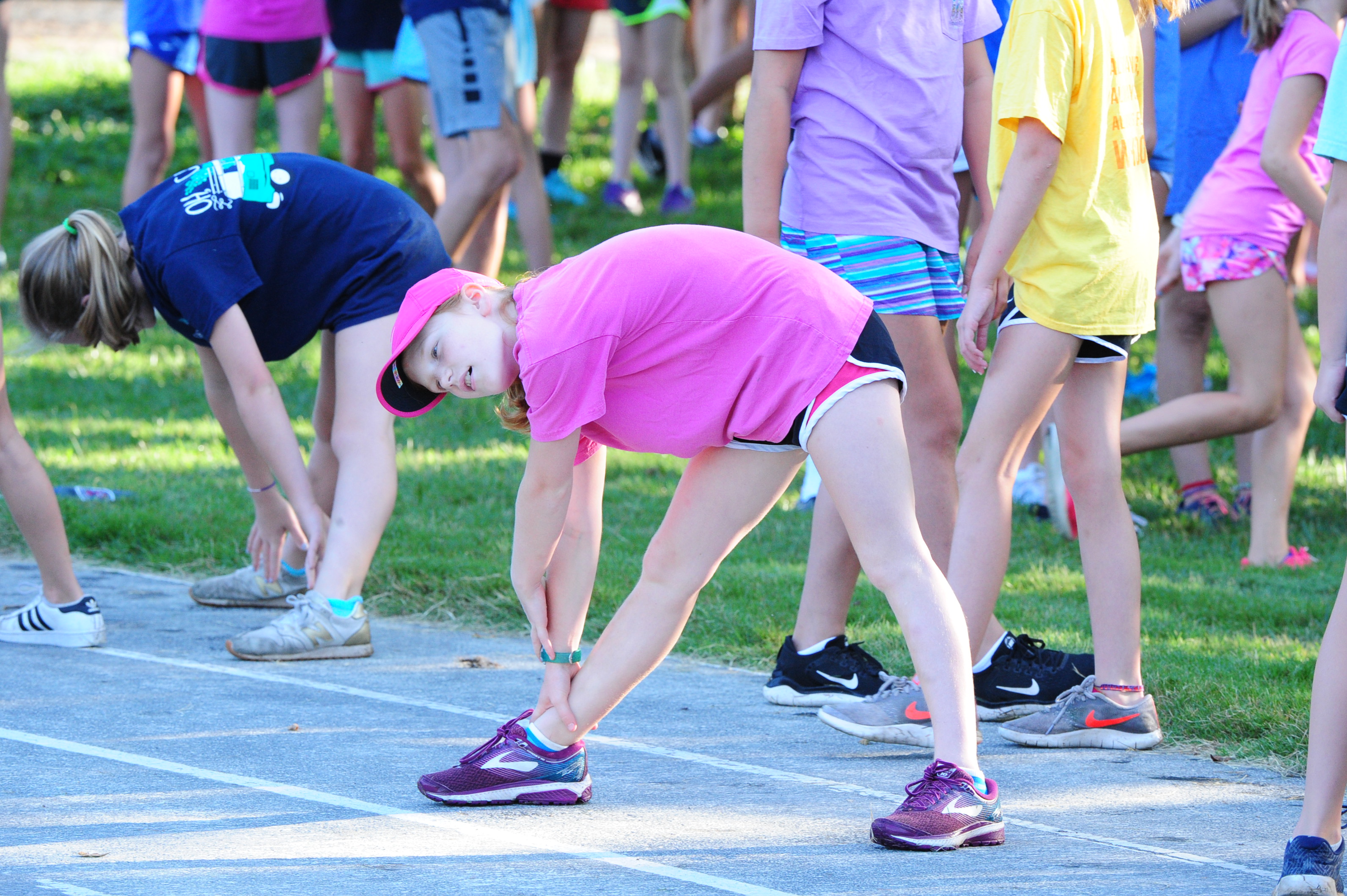 My father had a saying that the campers all knew by heart: “You have to pay the Price for the Promise of the Prize”. He said this whenever encouraging the girls to show up for the optional Stumblers Running Club that met on Sunday morning. The Price was running/walking 3 miles every Sunday of camp. The Promise was that we would give you a T-shirt prize. The “bribery” worked… campers came out in massive numbers then and they continue to do so today. A limited edition t-shirt just for a 30 minute walk on the track is an easy sell. Thus we get a huge turnout for what is actually a somewhat difficult activity.