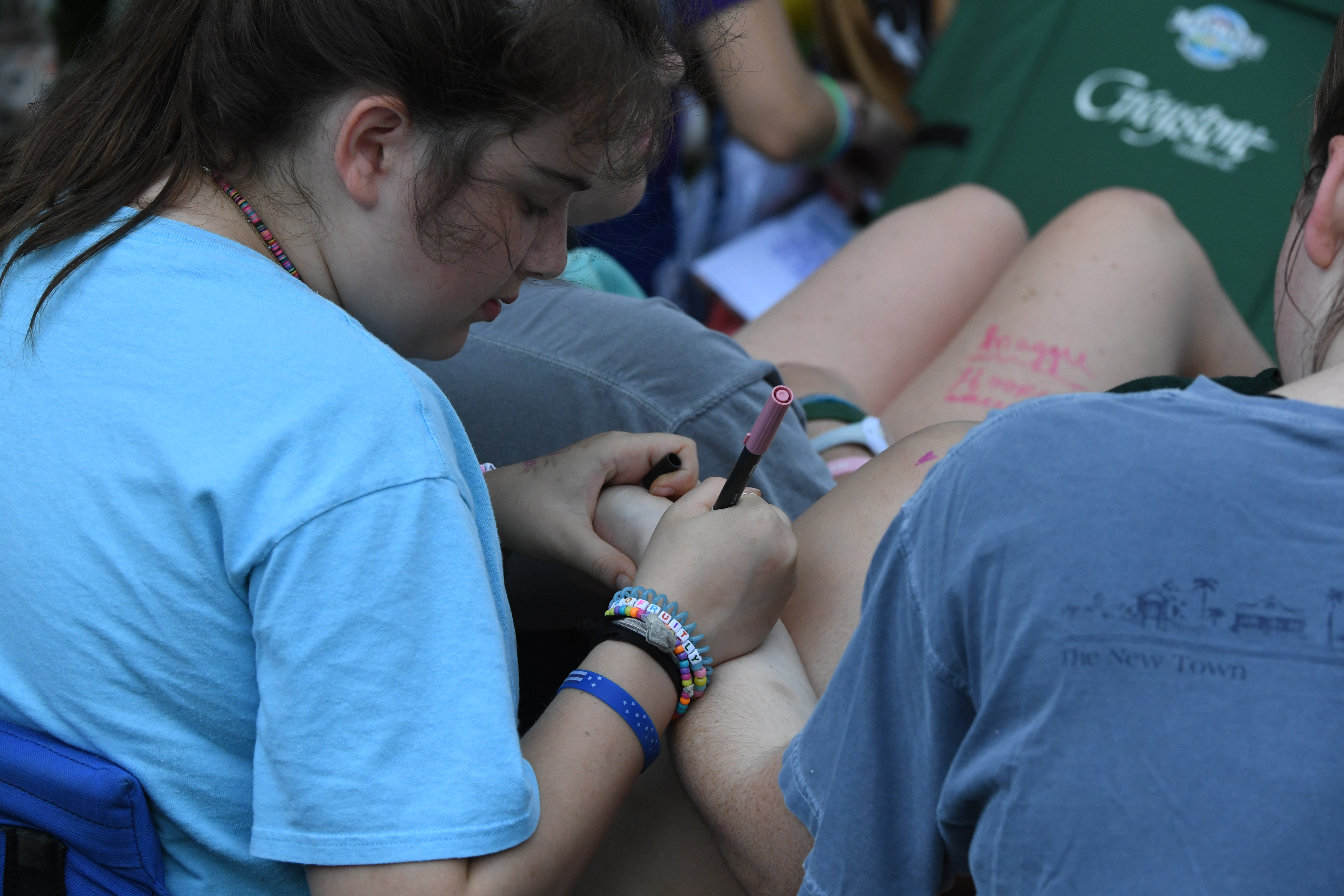 Holding hands as we walk to class, weaving flowers into each others hair, writing on each others limbs, rolling in the grass, wading in the water… most of these things would embarrass in a school setting but at camp they are completely natural.