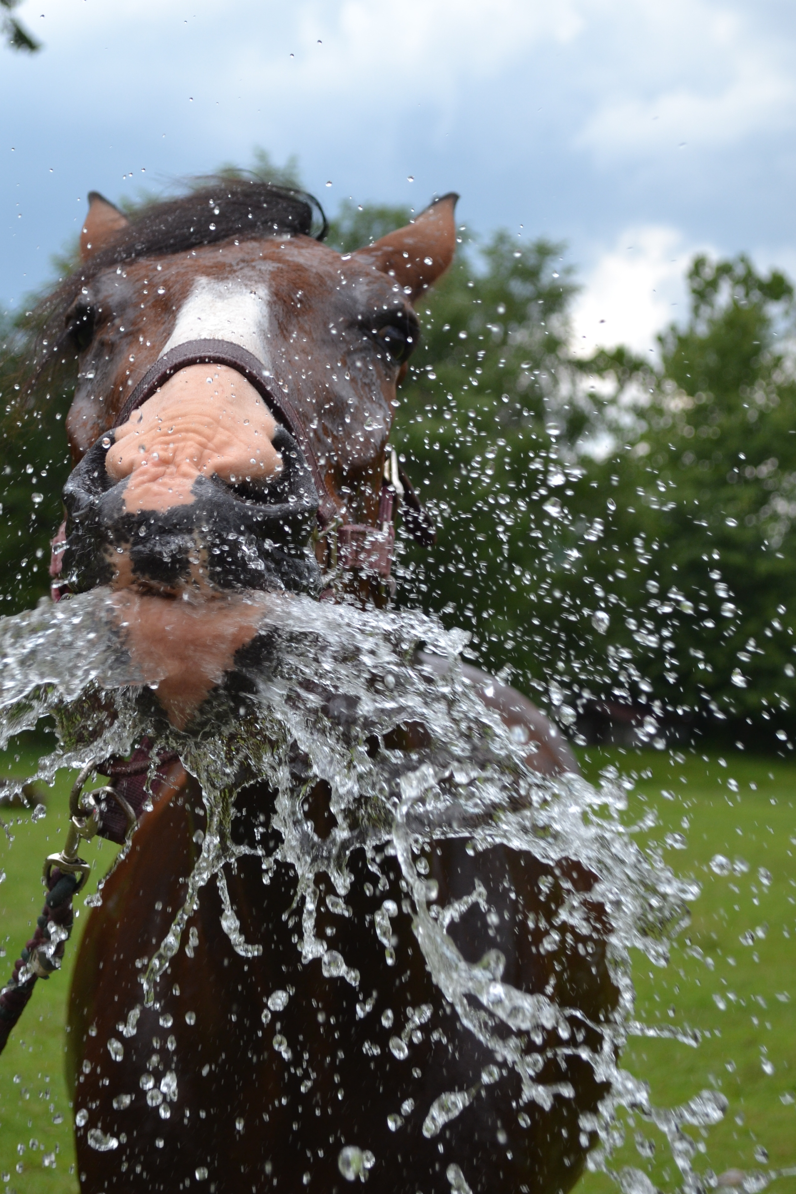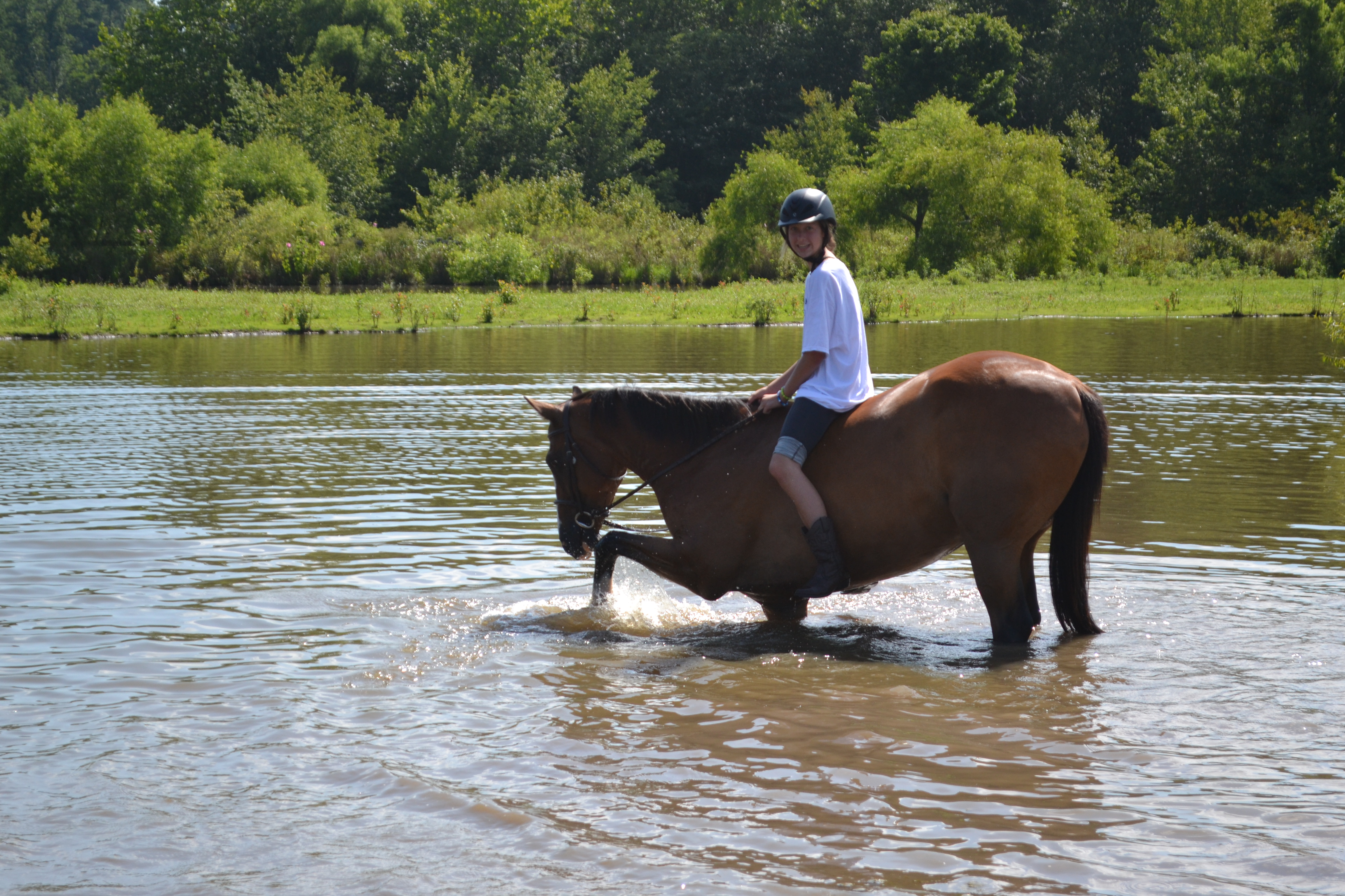 He loves getting wet whether it is a LONG cold shower on a hot day or swimming with or without a rider!