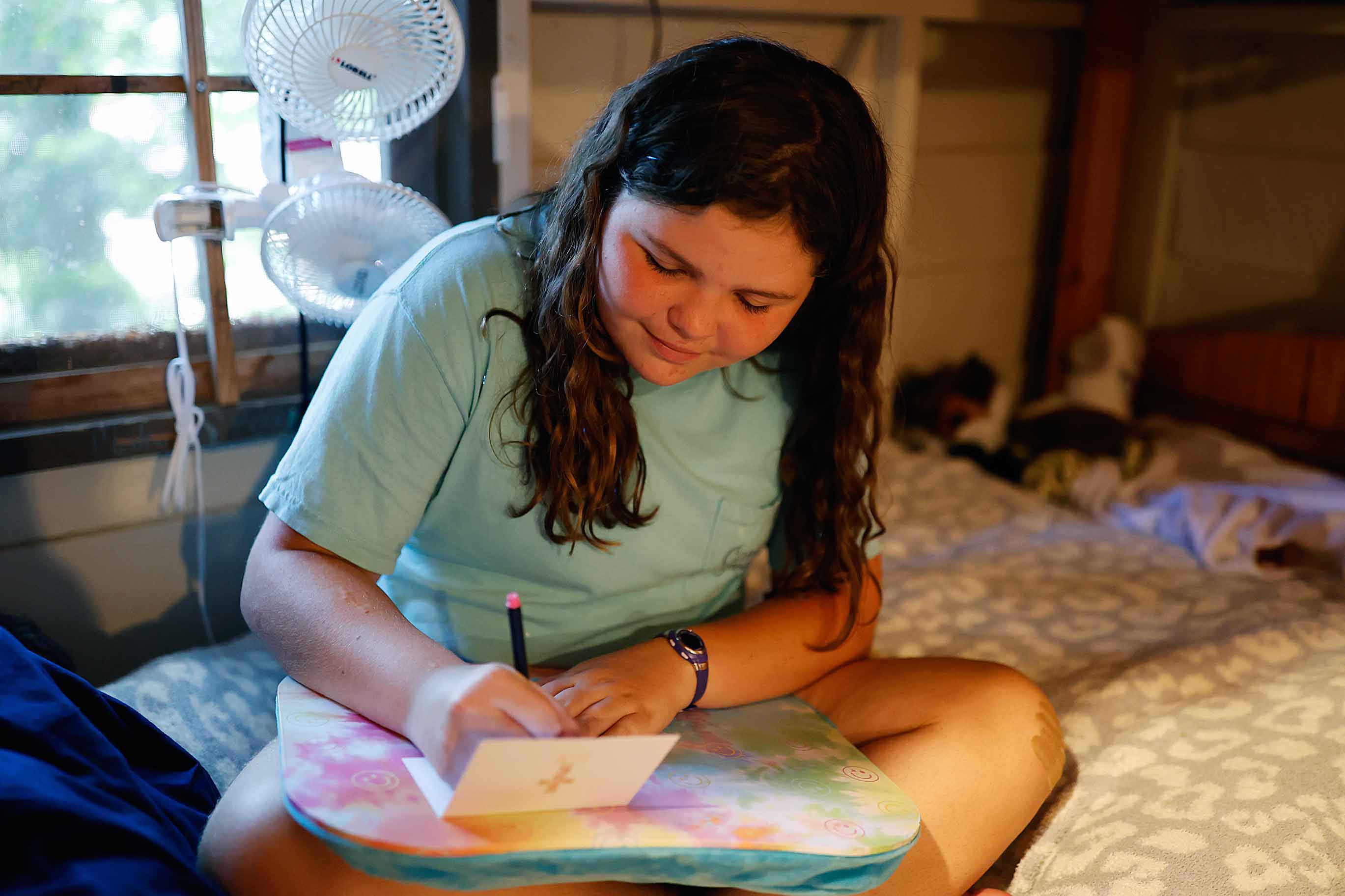Girls live in cabins with 8-10 other campers and 1-2 counselors. Most of our cabins have 1 shower, so as you can probably guess, shower time requires some finesse to get all of our campers in and out in a reasonable amount of time!