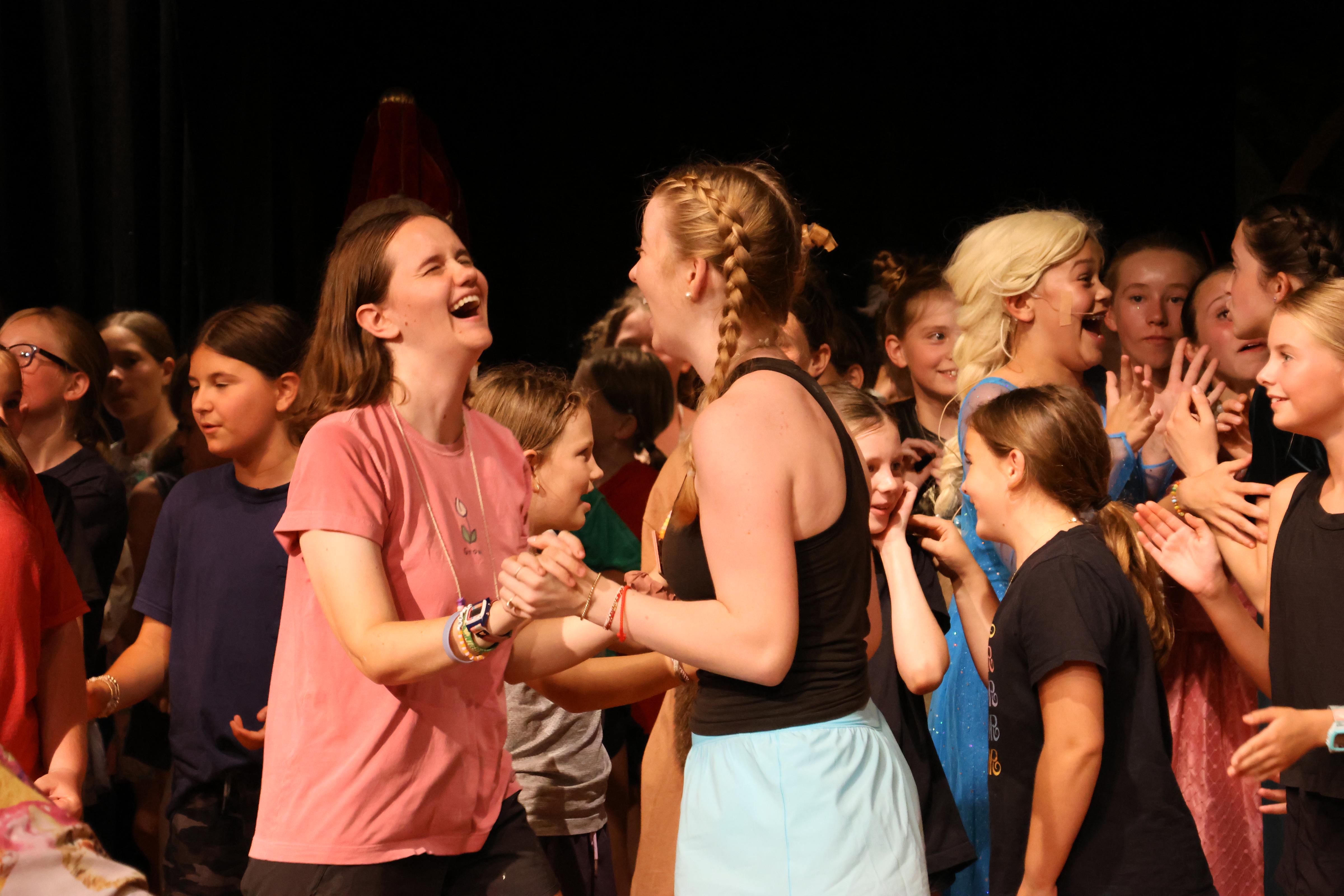 What a show! Countless hours were invested by the 108 campers who comprised this year’s cast and crew. The directors spent long nights and early mornings pouring their very souls into meticulous class plans that culminated with everything coming together at the last minute. The program included set design, props, sound, lighting, choreography, singing, and acting. It was amazing. The standing ovation was heartfelt and immediate when the curtain call began. The roar when the lead actors bowed deeply was deafening. The even louder roar when the backstage crew reluctantly emerged from the wings (huge smiles, hugging each other) brought tears to my eyes. It was wonderful. The best moment of my year, and I am so happy for the girls to have that memory.