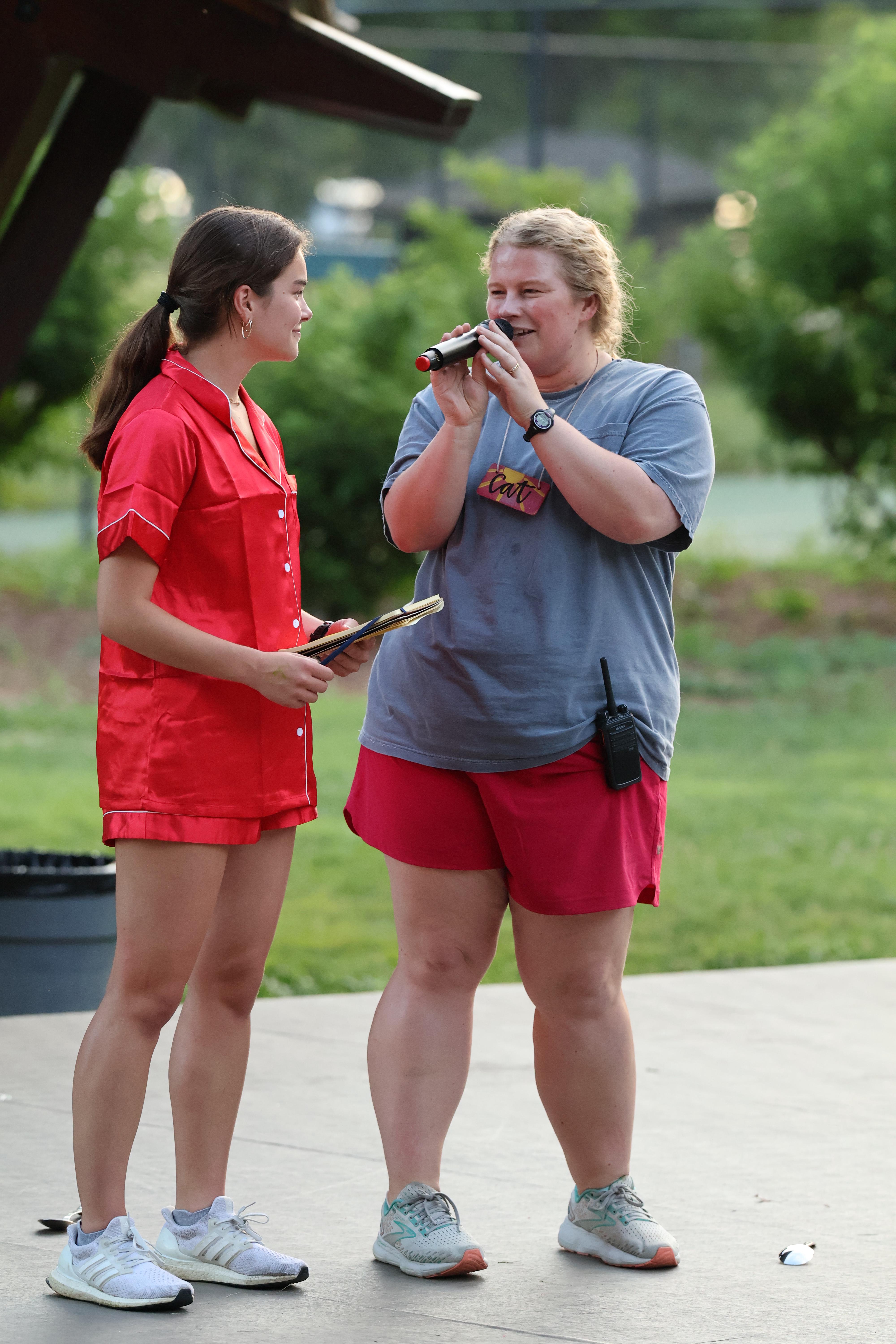 After the EP ended we had another surprise. Sophia, one of our Senior campers, joined Cat onstage and the excited murmurs from the audience indicated to all that something was off. The honor of closing the night is always given to a Head Staff member (typically Laura or me). Everyone looked at us to see if this was a “breach of etiquette”… we just smiled for it was part of the plan. We think spiritual growth is enhanced with other voices… campers, counselors, support staff, as well as head staff. Our inclination was correct. The prayer was sublime. Perfect for the moment, it brings tears to my eyes as I write about it. Such a sweet moment.
