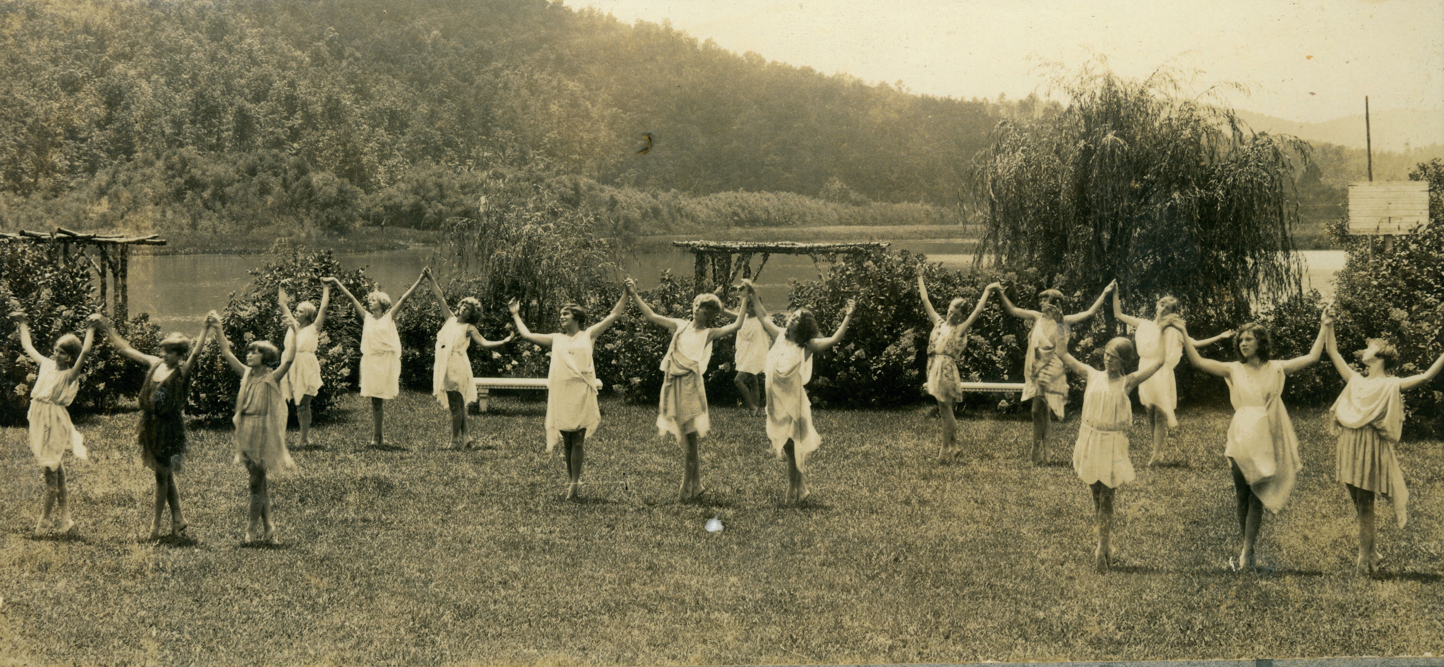In 1922, what we know now as the Pageant Court was a cornfield, and Dr. Sevier divided it into two areas: the Archery Range and the Pageant Court, which was used as an outdoor stage for dancing and dramatic pageants. With the natural slope of the grass leading to Lake Edith, the Pageant Court made for ideal seating; Dr. Sevier understood the benefits of sloped stadium seating before it was even a thing!